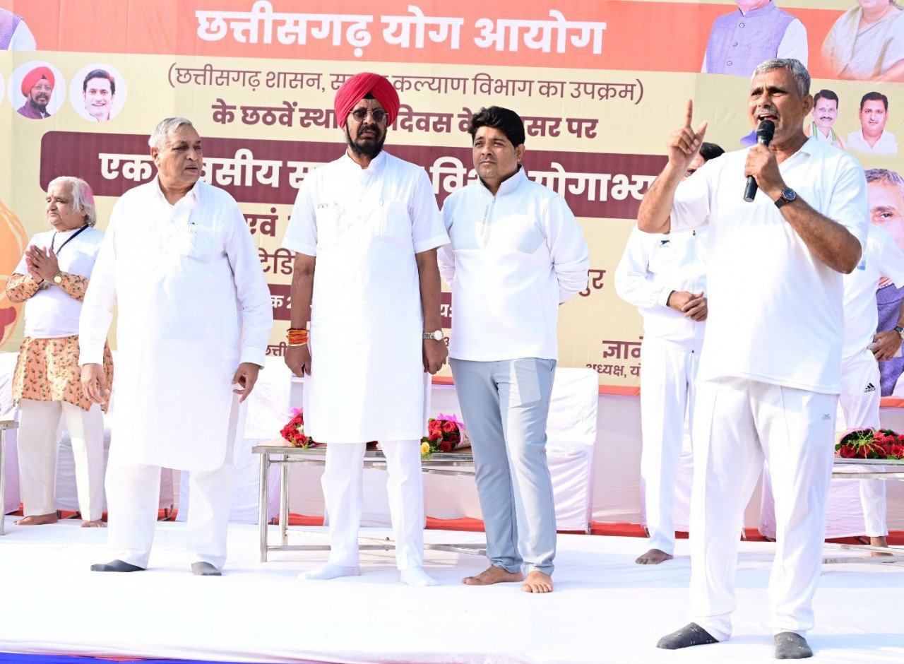 छत्तीसगढ़ योग आयोग के 6वें स्थापना दिवस पर 1500 लोगों ने किया सामूहिक योगाभ्यास