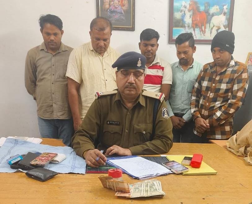 बिलासपुर: 05 आरोपियों के कब्जे से जुमला 6050 रूपये सहित ताश पत्ती किया गया जप्त।