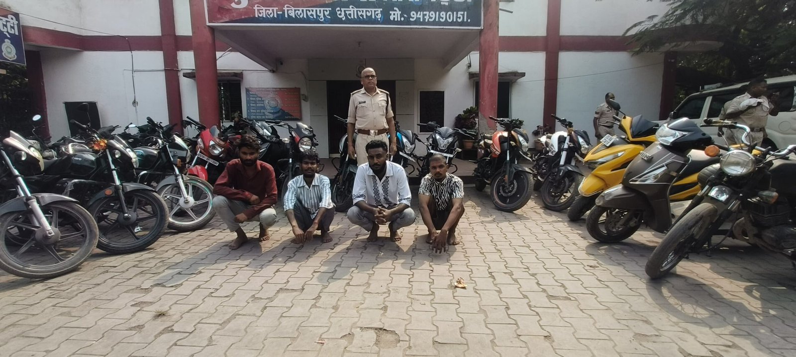 आरोपियो के कब्जे से 04 नग चाकू एवं मौके से 14 नग मोटर सायकल जप्त किया गया