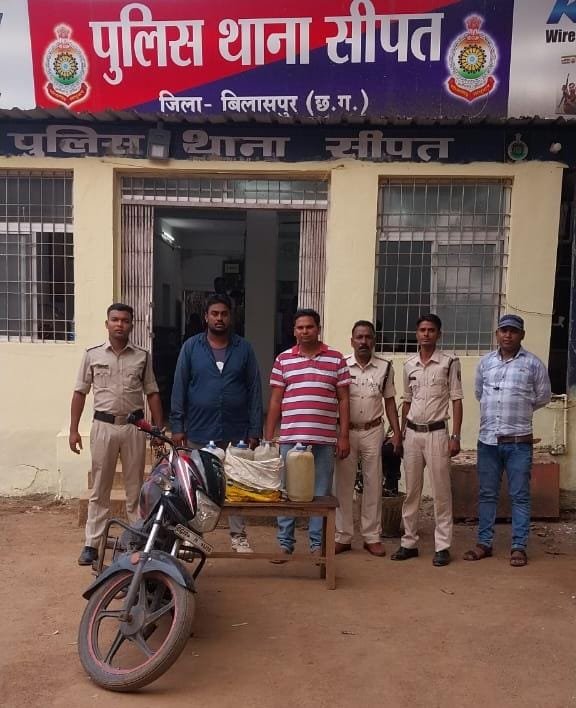 दिनांक 28.10.2024 को टाउन पेट्रोलिंग के दौरान थाना सीपत को मुखबिर से सूचना मिली कि दो व्यक्ति मोटरसाइकिल में भारी मात्रा में कच्ची महुआ शराब लेकर ग्राम सेलर की ओर जा रहे हैं। सीपत थाना प्रभारी और उनकी टीम ने तत्काल कार्रवाई करते हुए आरोपियों को रोककर उनके कब्जे से 40 लीटर देसी महुआ शराब और एक मोटर साइकिल जब्त की।