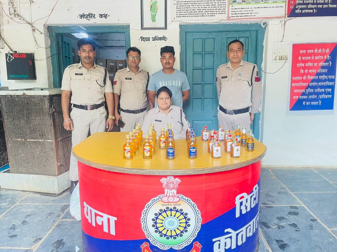 अतिरिक्त पुलिस अधीक्षक (शहर) राजेन्द्र जायसवाल एवं नगर पुलिस अधीक्षक कोतवाली पूजा कुमार के मार्गदर्शन में निरीक्षक प्रदीप कुमार आर्य के नेत्त्व में थाना सिटी कोतवाली पुलिस द्वारा मुखबिर के निशानदेही पर खटिक मोहल्ला टिकरापारा मे रेड कार्यवाही कर आरोपी पुन्टी उर्फ करन खटिक पिता बुट्टन खटिक उम्र 20 वर्ष निवासी डी.पी.कालेज के पास खटिक मोहल्ला थाना सिटी कोतवाली को 37 पाव (06.660 लीटर) अंग्रेजी शराब अलग अलग ब्रांड के कीमती 6030 रूपये के साथ पकडा गया। आरोपी को विधिवत गिरफ्तार का न्यायिक रिमाण्ड पर भेजा गया।