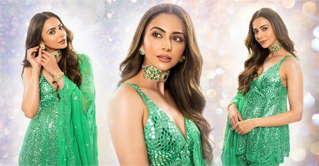 ढोल नाइट लुक शरारा सूट..चोकर नेकलेस..कजरारे नैन..प्री-वेडिंग फंक्शन में दुल्हनिया रकुल प्रीत सिंह ने चौदवीं का चांद बन लूटी महफिल