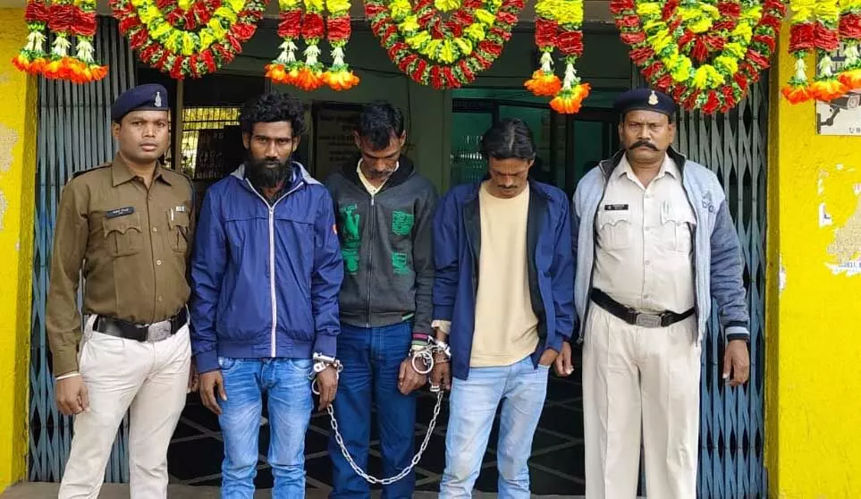 गिरफ्तार आरोपी: 01. प्रदीप चौहान पिता गजानंद चौहान उम्र 34 वर्ष निवासी कालीबाड़ी चौक सांई भोजनालय के पीछे थाना सिटी कोतवाली जिला रायपुर। 02. ओमकार सेन पिता राजकुमार सेन उम्र 40 वर्ष निवासी भीम नगर छोटू सब्जी दुकान के पास अश्वनी नगर थाना पुरानी बस्ती जिला रायपुर। 03. साकीर उसमानी पिता यूसुफ उसमानी उम्र 34 वर्ष निवासी छोटा पारा गर्ल्स स्कूल के पास थाना सिटी कोतवाली जिला रायपुर।
