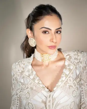 एक्सेसरीज की बात करें तो रकुल ने हैवी चोकर नेकलेस और ईयरिंग्स कैरी किए थे। दुल्हन वाला ग्लो रकुल के चेहरे पर अभी भी बरकरार है।