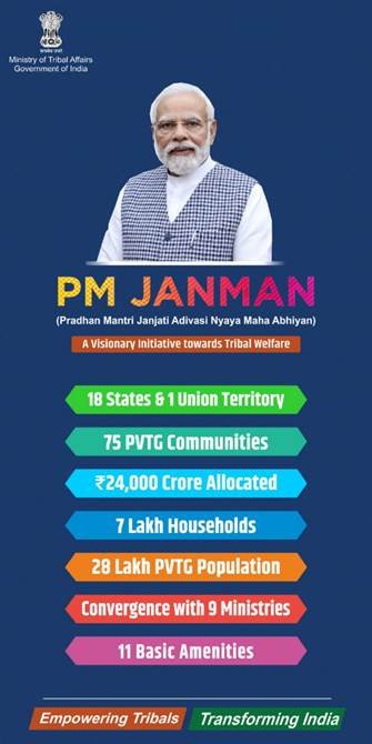 पीएम जनमन योजना के तहत पीवीटीजी हितग्राहियों को लाभान्वित करने शिविरों का आयोजन 23 अगस्त 2024 से 10 सितम्बर 2024 तक होगा। इन शिविरों में हितग्राहियों के लिए आधार कार्ड, जनधन खाता, आयुष्मान कार्ड, वन अधिकार पत्र, राशन कार्ड, पीएम किसान सम्मान निधि, पीएम मातृत्व वंदना, किसान क्रेडिट कार्ड, सिकल सेल जांच, जाति प्रमाण पत्र बनाने के साथ ही शासन की विभिन्न योजनाओं का शत प्रतिशत लाभ व मूलभूत स्वास्थ्य सेवाएं पीव्हीटीजी को प्रदान करना है।